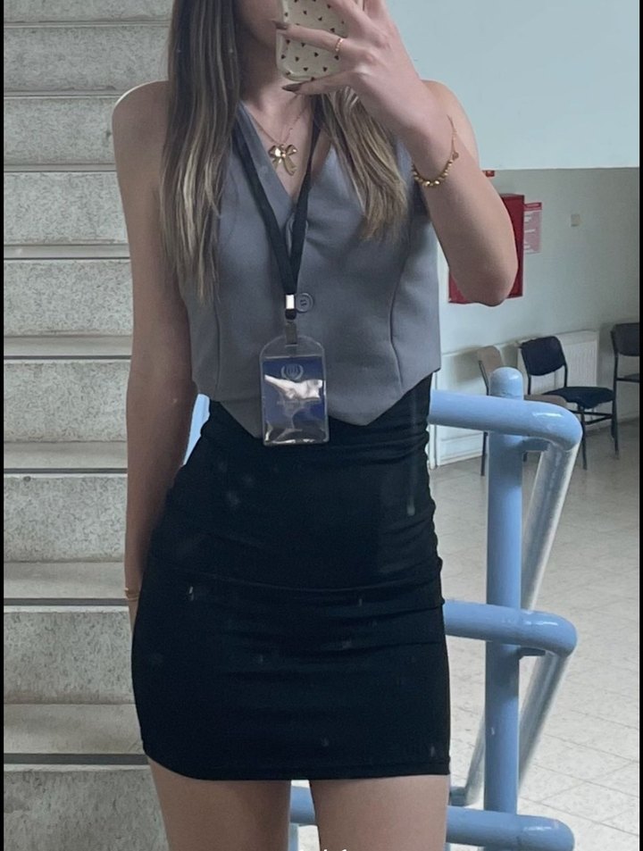 Bu dar kesim, kolsuz kadın yelek, gri renkte deri ve halter yakaya sahiptir. Düz ve desen içermeyen tasarımıyla ofis ve günlük şıklık için uygundur.