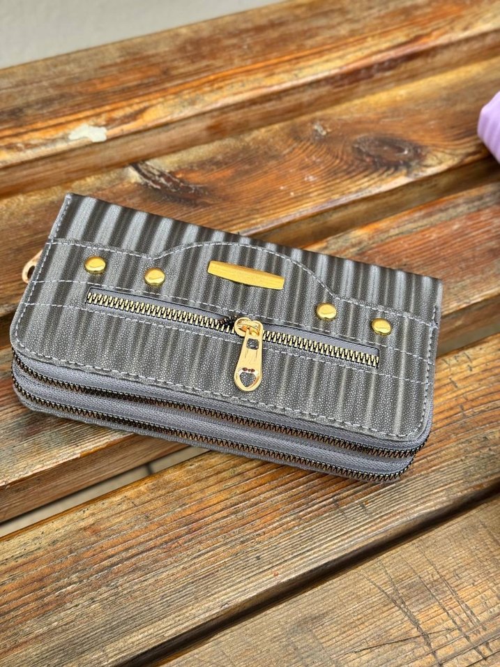 Nakış detaylı, gri deriden yapılmış, fermuarlı kadın cüzdanı. Altın tonlarında aksesuarları ve vintage bohem tarzıyla günlük kullanıma uygundur. 34522