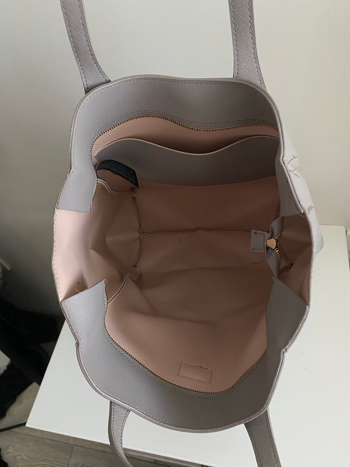 Gri renkte deri, fermuarlı kapamalı, minimalist ve çağdaş tasarıma sahip kadın çantasıdır. İç kısmı bej renktedir ve günlük kullanıma uygundur. Bir kaç ufak kusuru olduğundan uyguna bırakıyorum. (Amblem kısmında minik bir aşınma var fotoğrafta belli oluyor)
