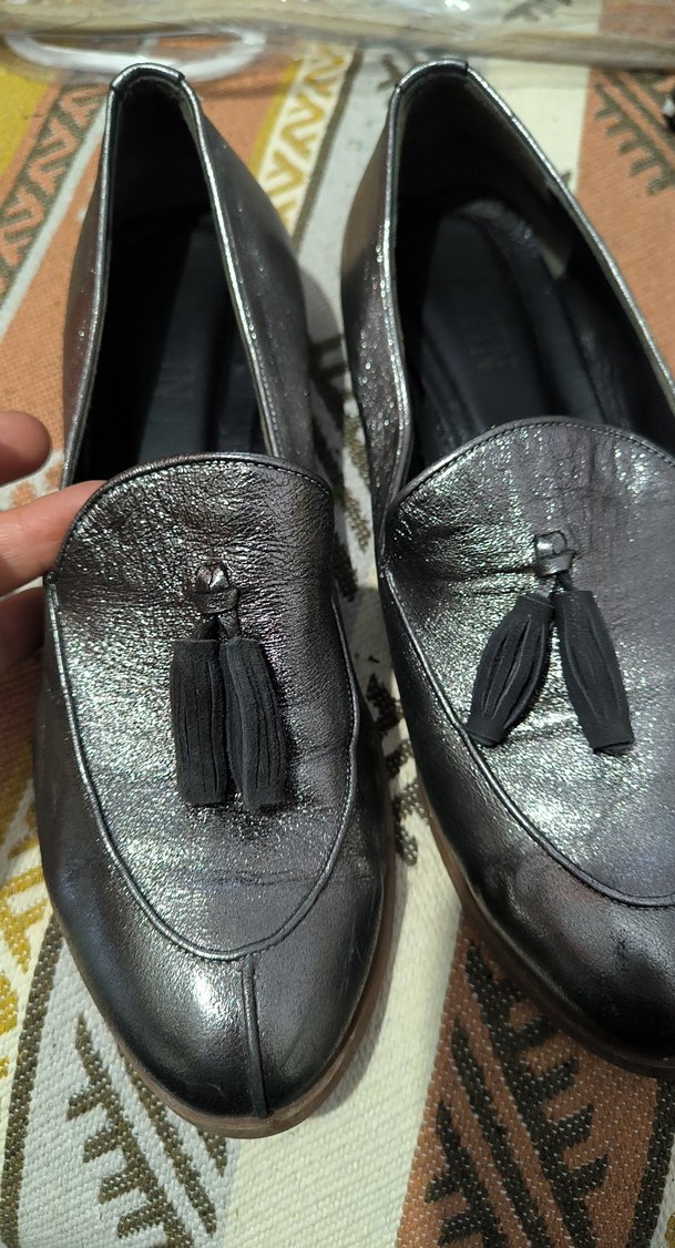 Gri Deri Püsküllü Kadın Oxford Ayakkabı