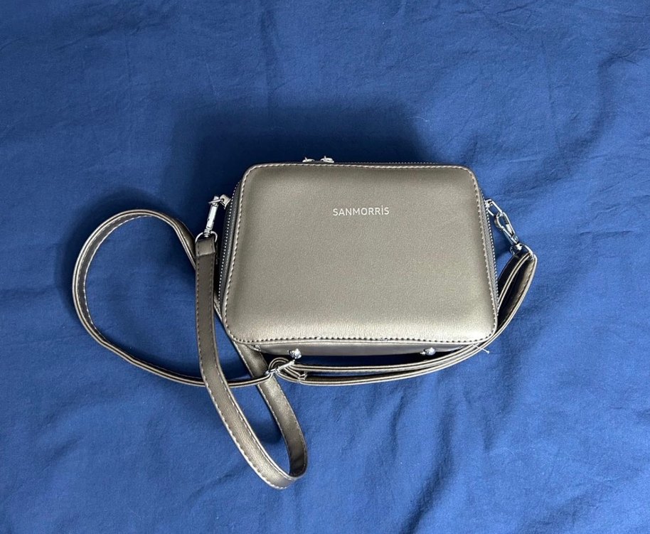 Sanmorris markalı gri deri kadın çanta, fermuarlı kapama ve sade normcore tarzıyla günlük kullanıma uygundur. Desensiz, trend bir görünüme sahiptir.