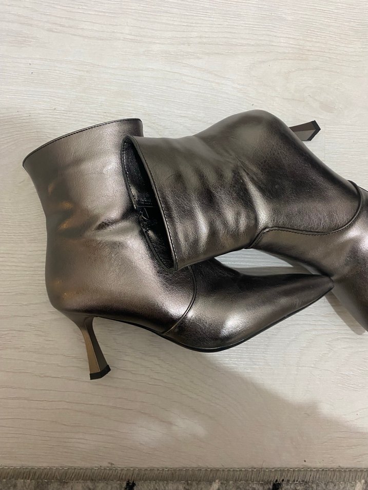Gri Deri Stiletto Topuklu Kadın Bot