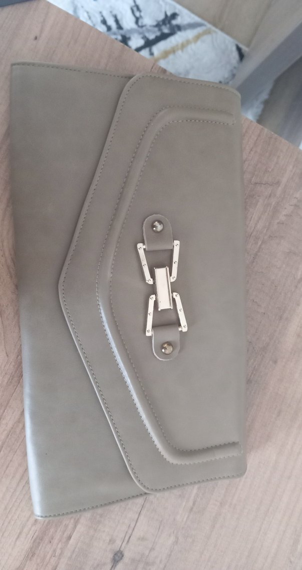 Gri Deri Tokalı Kadın Çanta