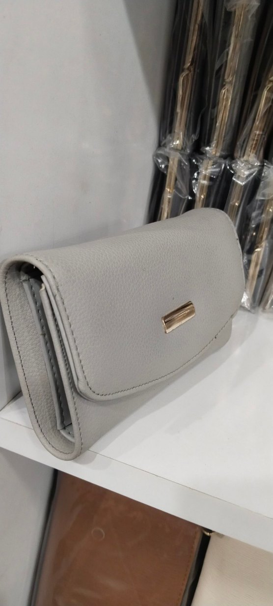 Gri Deri Tokalı Kadın Portföy Cüzdan