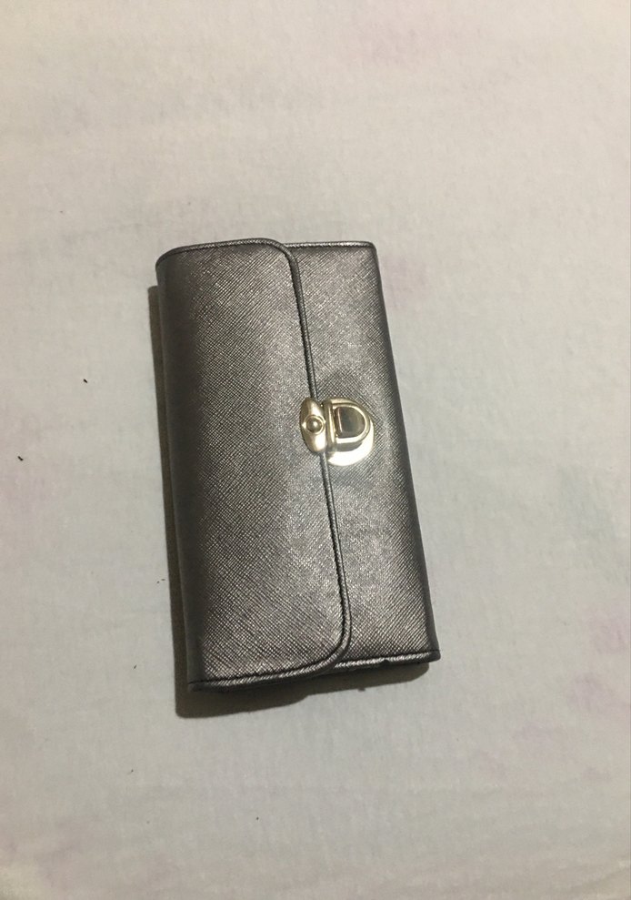 Gri deri tokalı kadın portföy cüzdan, baskılı dokusu ve Paris tarzı gotik şıklığıyla günlük kullanıma uygundur.