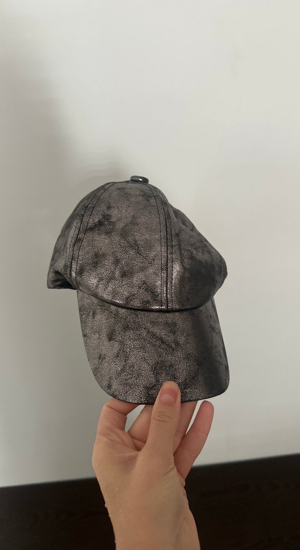 Gri deri tokalı kadın şapka, sokak stili ve grunge punk etkileri taşıyor. Rock punk havası için uygun.
