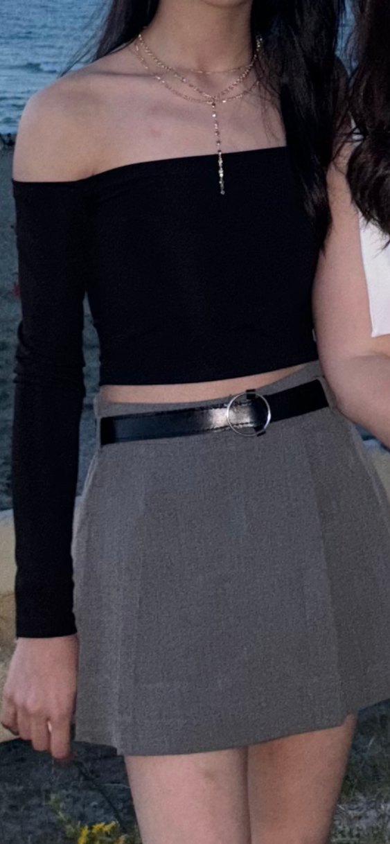 Gri deri malzemeden üretilmiş kemerli etek. Minimalist ve streetwear tarzıyla günlük kombinlere uyum sağlar. Xs-S beden