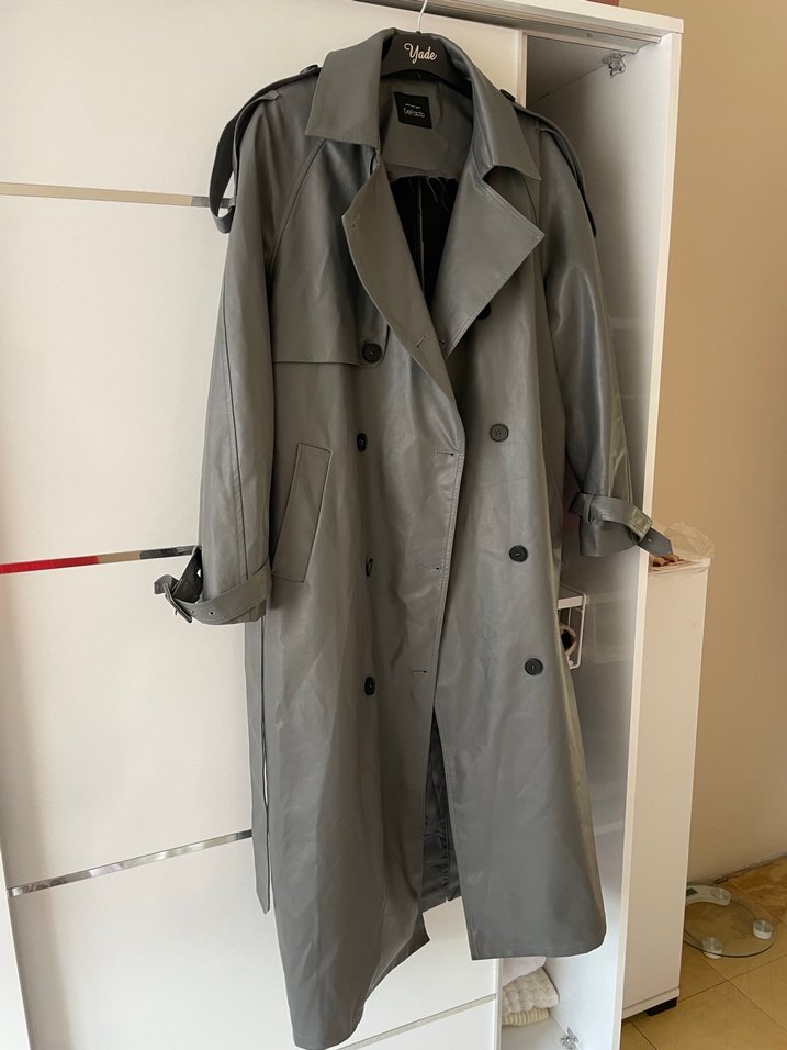 Gri Deri Uzun Trençkot