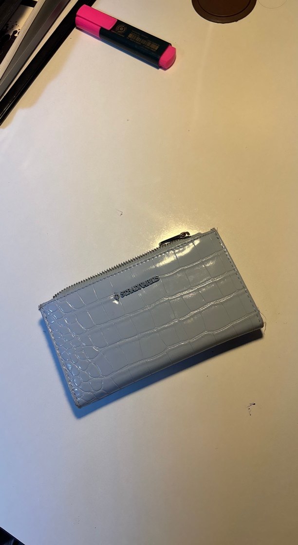 Gri deri yılan desenli ve fermuarlı kapamalı kadın cüzdanı, günlük kullanıma uygun sokak modası tarzında.