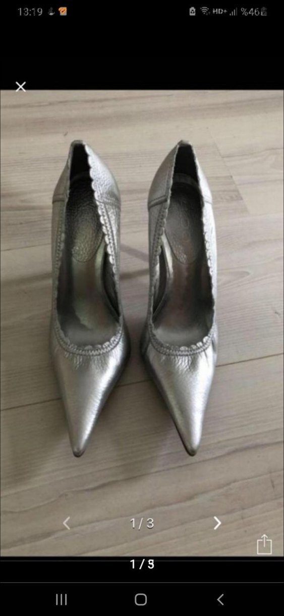 Gri deri yılan desenli ve pilili kenarlarıyla modern klasik stilettolar, romantik akşamlar için uygun.