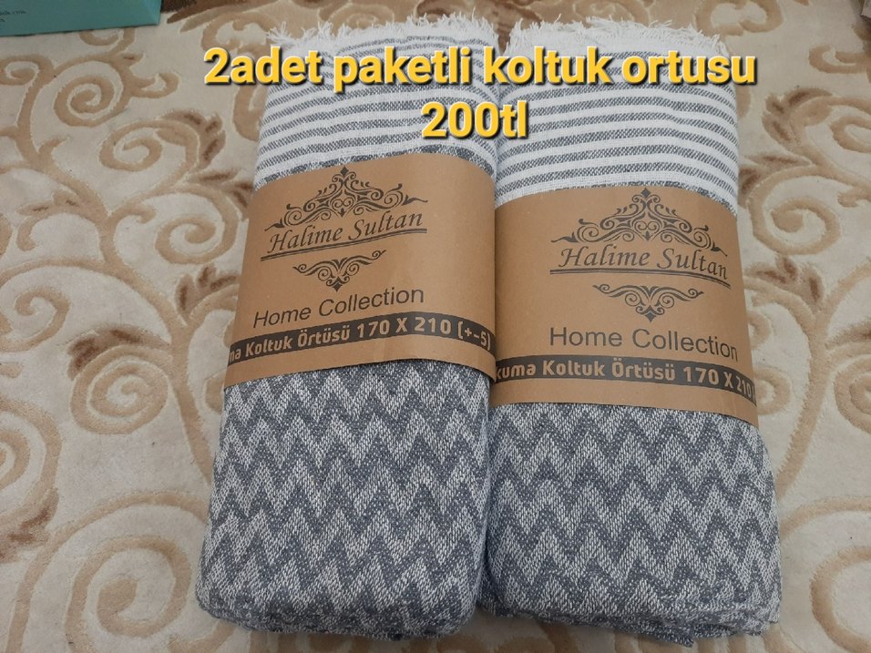 Halime Sultan Home Collection'dan bohem tarzda gri desenli 2 adet koltuk örtüsü, her biri 170 x 210 cm ölçülerinde, paket halinde. sepette urun birlestirme yapmayiniz almak istediginiz urunleri belirtin ben birlestirip ilan acayim