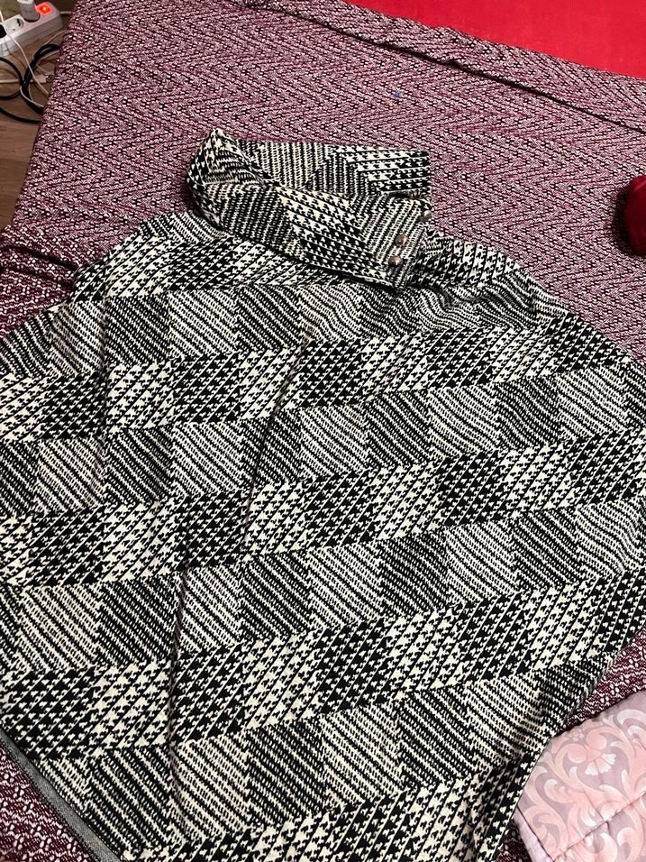 Gri desenli, örgü dokulu. Balıkçı yaka ve uzun kollu, rahat kesimiyle modern ve şık bir tasarım sunar.
