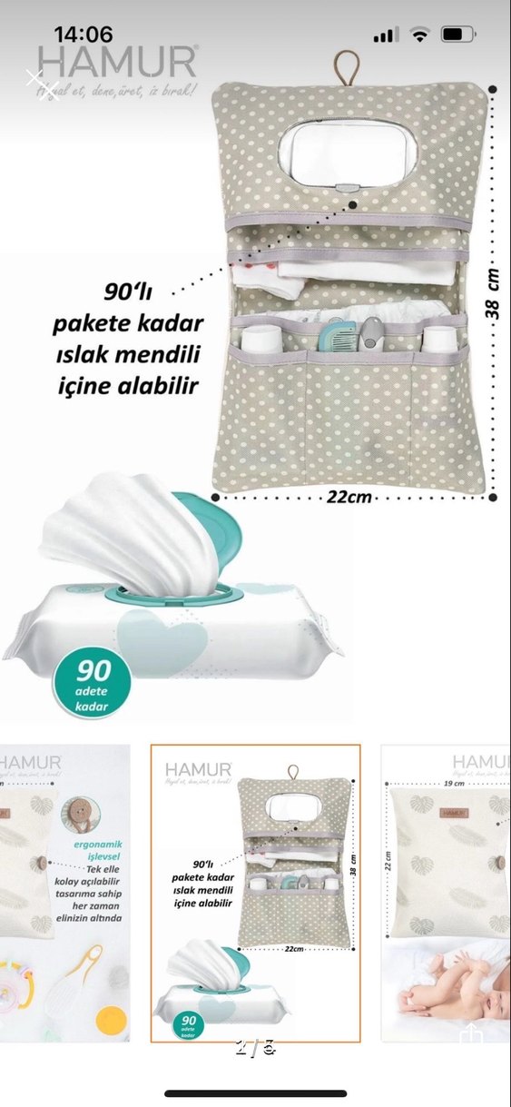 Gri renkli, desenli bebek bezi çantası. Ergonomik ve fonksiyonel yapısıyla 90'lı pakete kadar ıslak mendil alabilir.