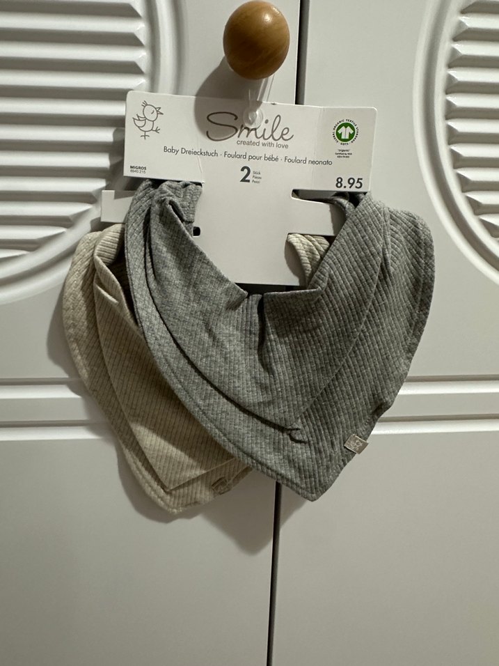 İki adet yumuşak, gri ve ben tonlarda bebek önlüğü