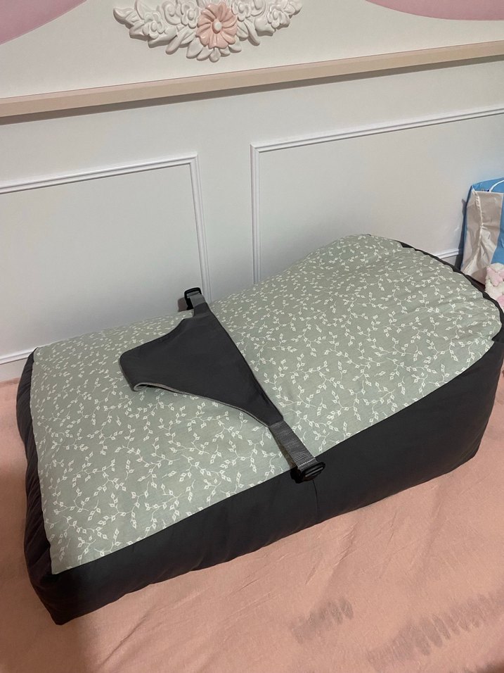 Gri çiçek desenli, ayarlanabilir kayışlara sahip bebek taşıma minderi, bebeğiniz için konfor ve destek sağlar.