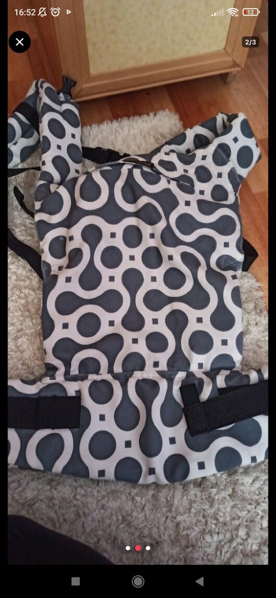 Gri renkte, ayarlanabilir kayışlara sahip, rahat kullanım sunan deseniyle bebek taşıyıcı. Bebek taşıma sırasında güvenli destek sağlar.