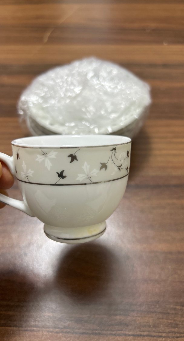 Gri Desenli Beyaz Porselen Fincan