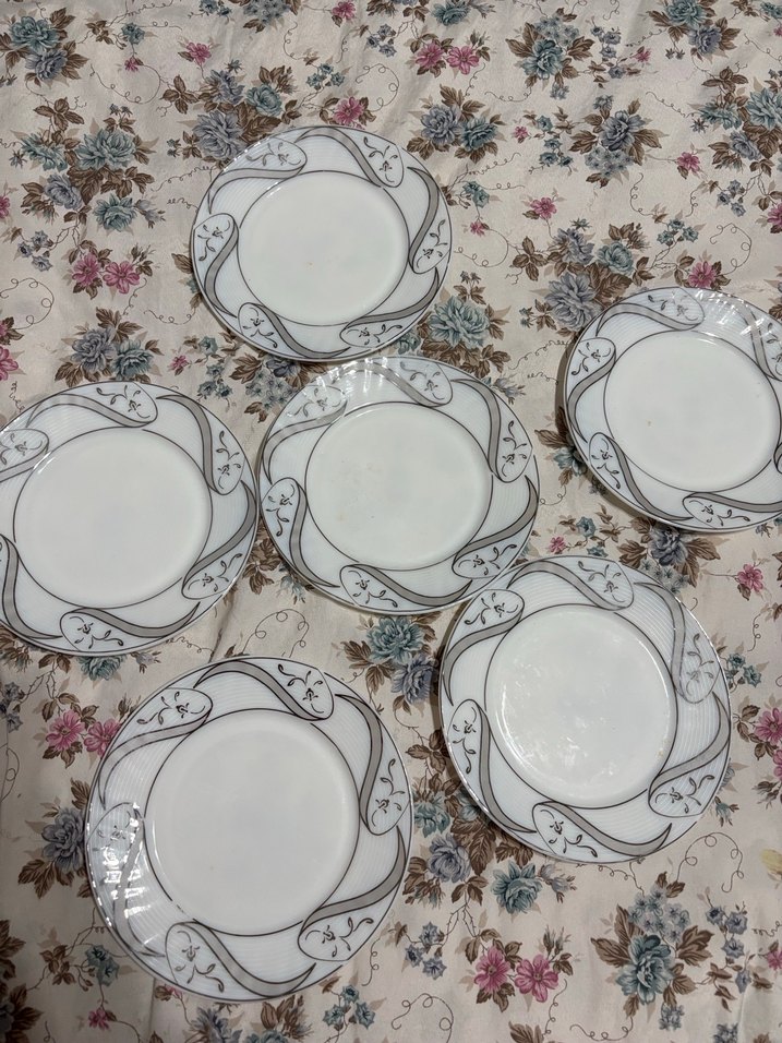 Gri desenli beyaz tabaklardan oluşan, pasta tabağı seti 6lı porselen