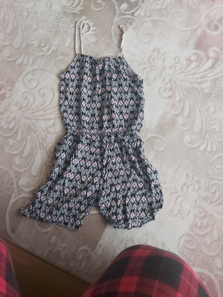 benim kızım 10 yaşındayken giydi yakadan büzülerek kullanılıyor askılı ince yazlık keten kumaş tulum boydan koltuk altından ölçüyorum 62 santim kalçadan en 47 santim Belin lastikli yeri 35 santim yanlardan iki cebi var