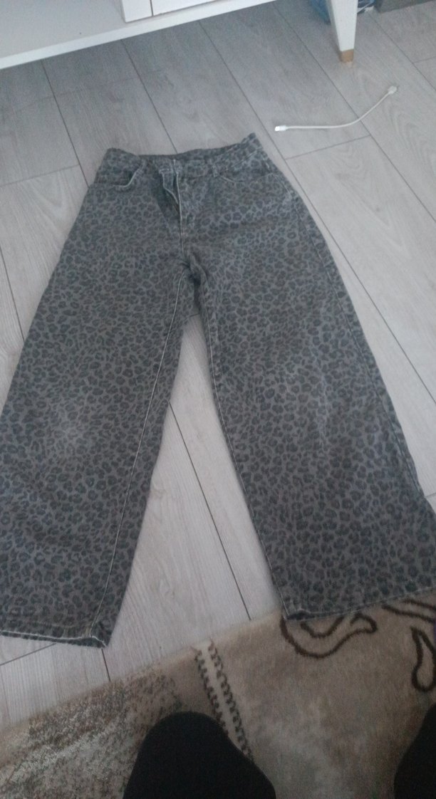 Gri renkli, yılan desenli bol kesim kadın jean. Bel detaylı ve midi boyda, günlük sokak tarzına uygun.