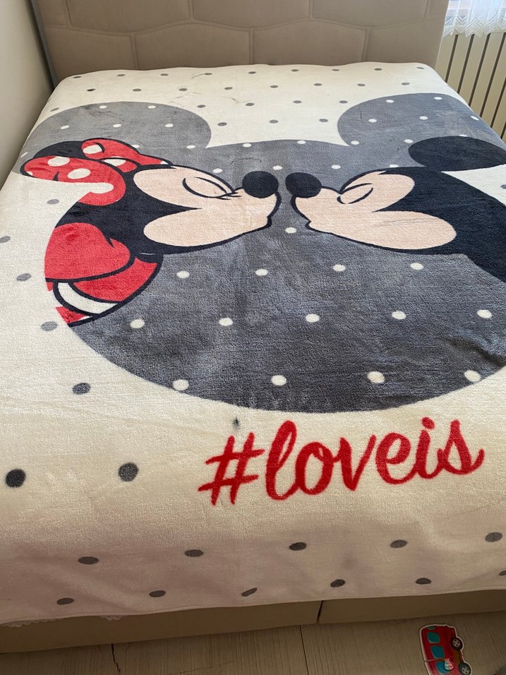 Yumuşak ve sıcak gri tonlarda, baskılı iki #çizgi film karakteri ve #loveis yazılı çift kişilik battaniye .dokusu yumuşaktır.#çift kişilik Lekeleri var yıkarken oluştu makinenin lastikleri yaptı