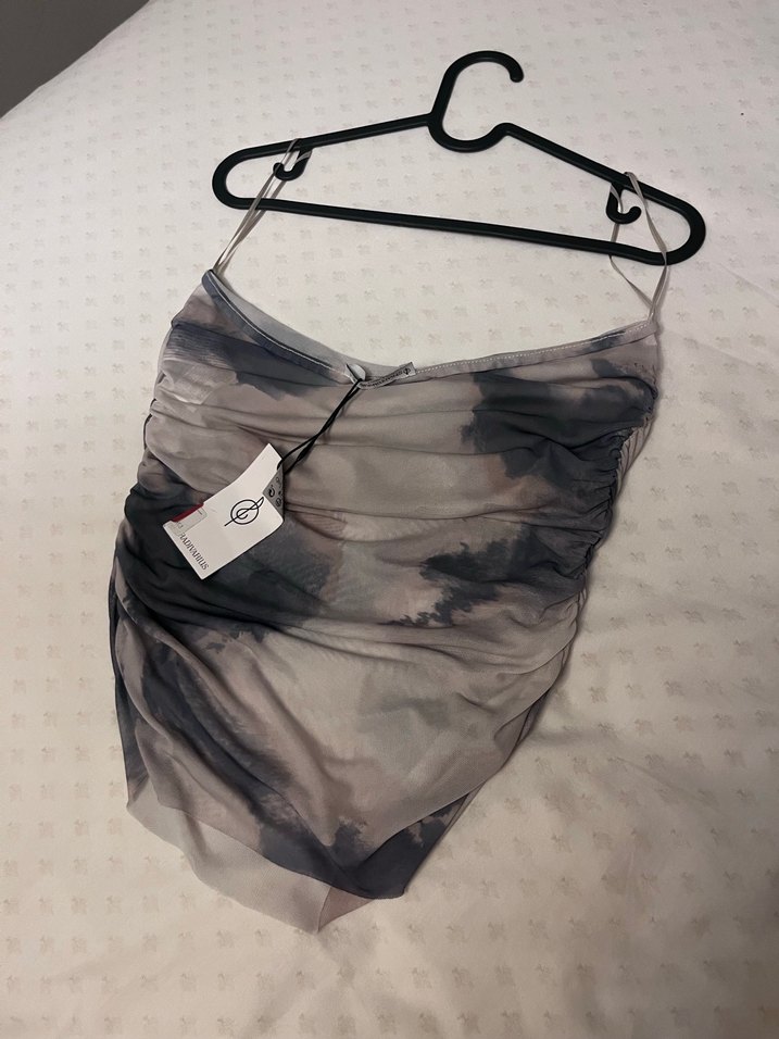 Gri Desenli Drapeli straplez bluz