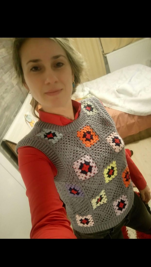 Gri renkli, desenli örgü bohem tarzda, kolsuz ve salaş kesime sahip midi uzunlukta kadın süveter. Yuvarlak yaka ve günlük kullanım için uygundur. S/M beden uyumlu. kaliteli merserize ve koton ipler ile örüldü.Gömlek üzerine çok şık duruyor. dikkat çekici.