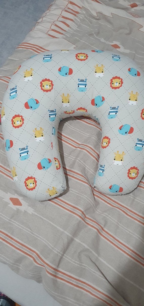 Sevimli hayvan figürlü, rahatlık ve destek sağlayan gri desenli emzirme ve hamile yastığı.