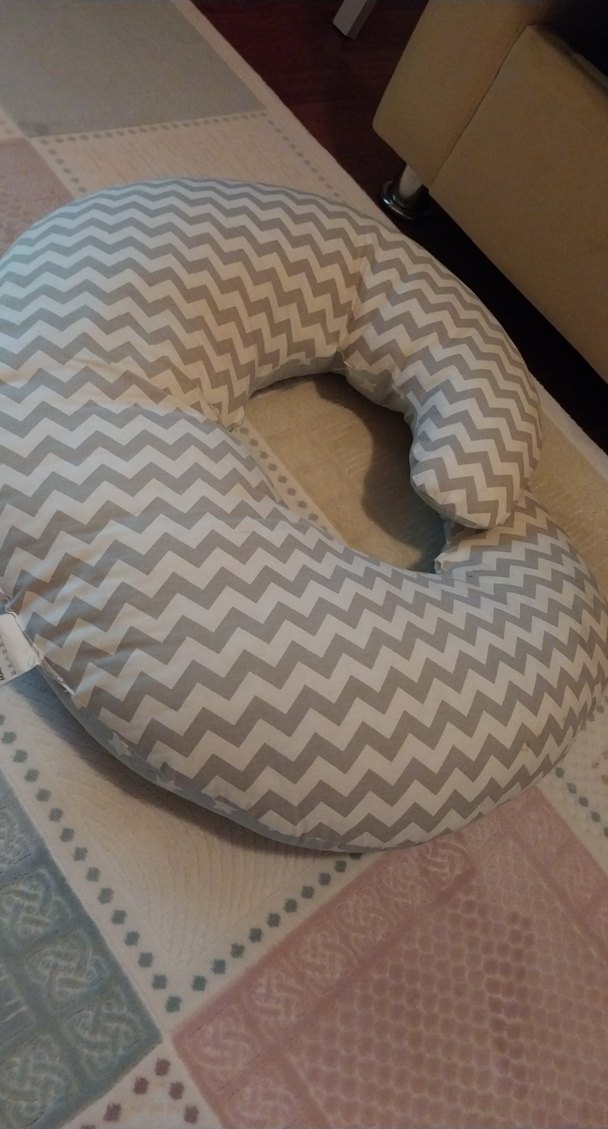 Gri zigzag desenli bu hamile ve emzirme yastığı, hamilelik ve emzirme dönemlerinde rahat destek sağlar.