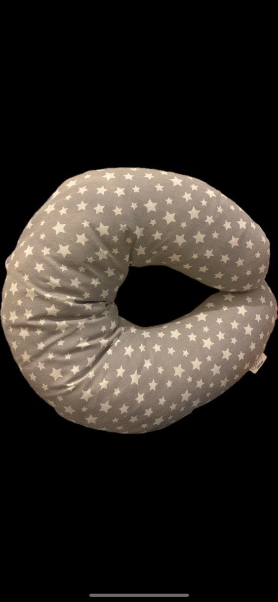 Leke yırtık vs yoktur . Yıldız desenli yumuşak kumaştan yapılmış gri hamilelik ve emzirme yastığı, konfor ve destek sağlar.