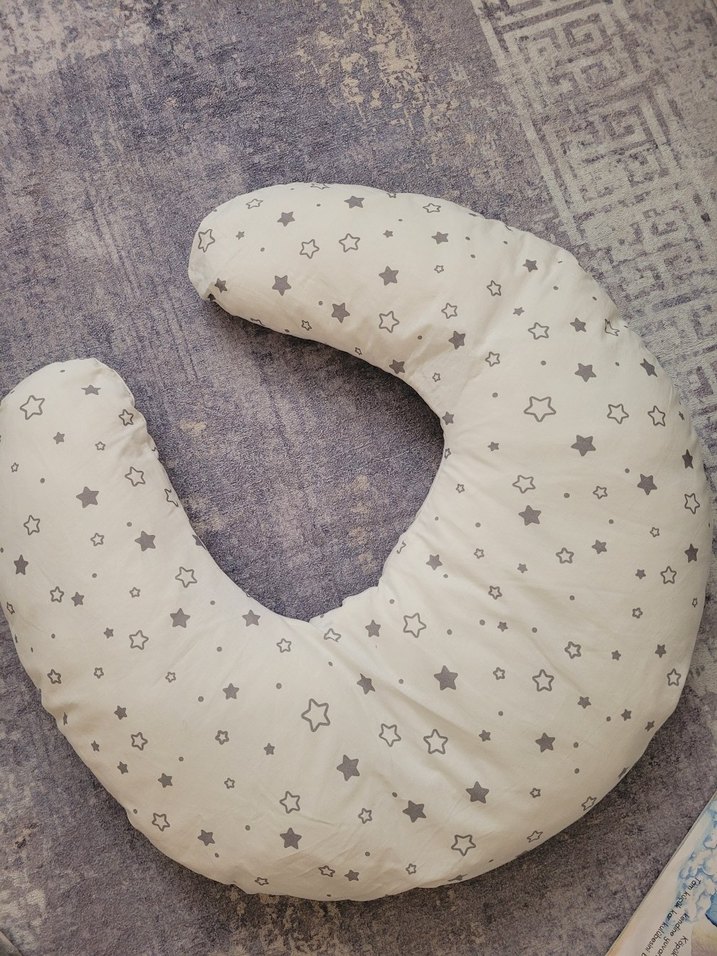 Nakışlı yıldız desenli gri hamilelik ve emzirme yastığı, rahat destek sağlar. Yatas marka hiç kullanılmadı. Tummy Time yastığı.