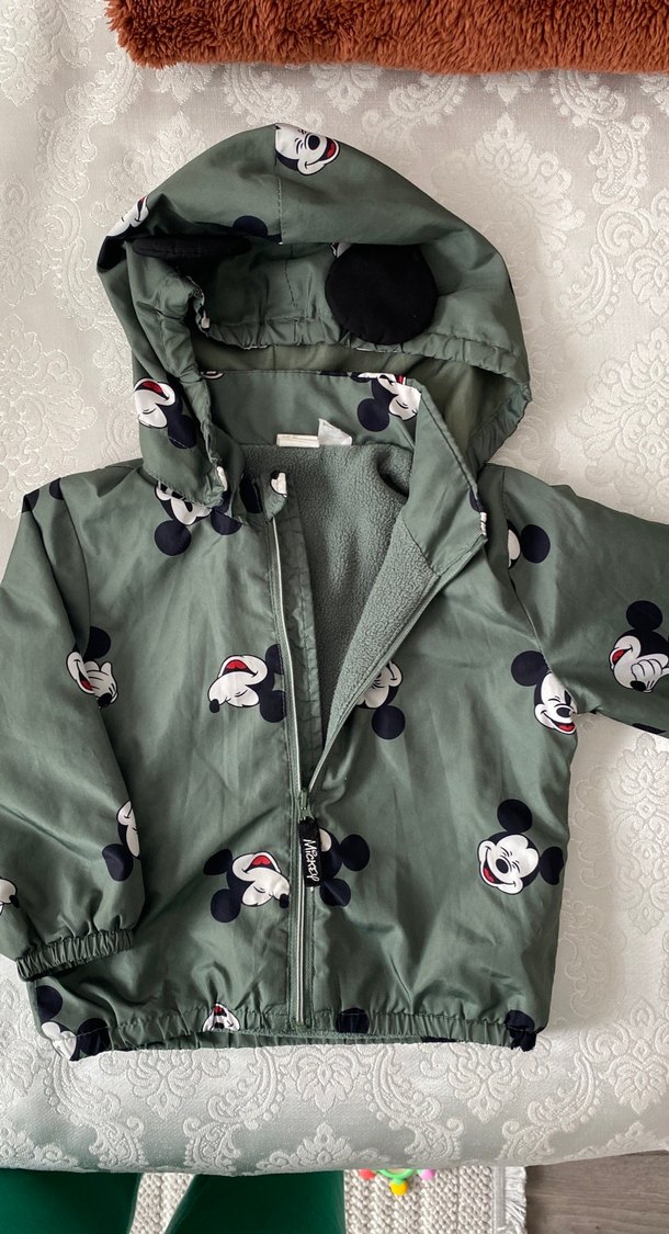 Yumuşak fleece kumaştan gri renkli, kapüşonlu ve düğmeli erkek çocuk yağmurluğu. Mickey Mouse desenleriyle rahat ve bol kesim, trend sokak stili için uygundur. ☔