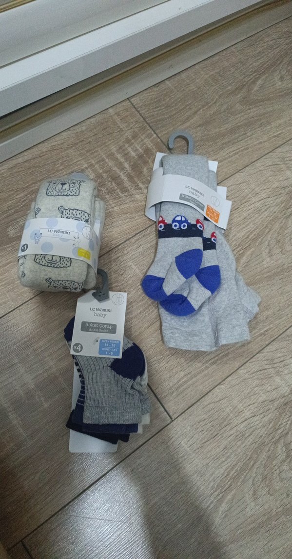 Gri renkli, baskılı desenlere sahip erkek çocuk çorap seti. Rahat ve yumuşak dokulu, günlük kullanım için uygun.