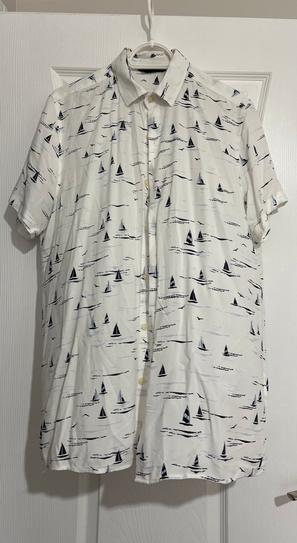 Düğmeli, yakalı ve kısa kollu erkek gömleği. Yumuşak sentetik kumaştan, rahat kesim ve gri yelkenli desenlidir. Günlük kullanıma uygundur. ⛵