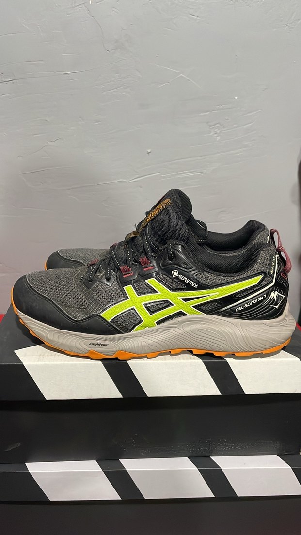 Gri desenli erkek koşu ve spor ayakkabısı, kauçuk tabanlıdır . Sokak giyimi ve athleisure tarzına uygundur.