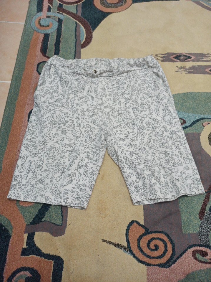 Gri renkte, pamuklu kumaştan yapılmış, desenli erkek mini şort, rahat ve salaş kesimiyle günlük sokak stiline uygun. beli lastikli belindeki ılık yerinde defo var