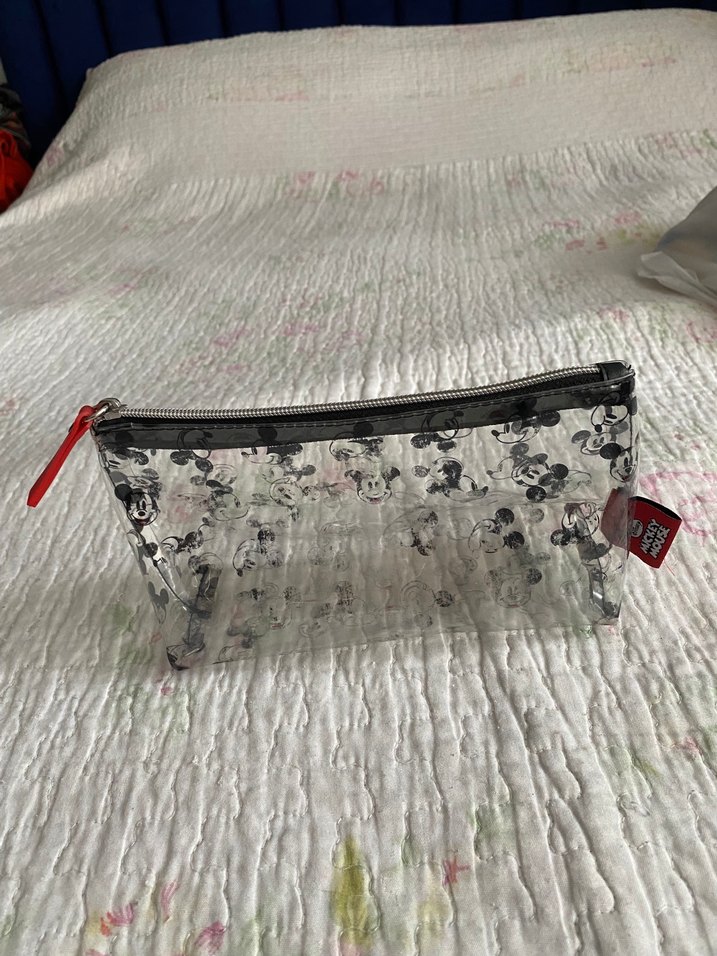 Gri renkte, baskılı ve fermuarlı plastik makyaj çantasıdır. Grunge punk ve avant-garde tarzlara uygundur. Yenidir