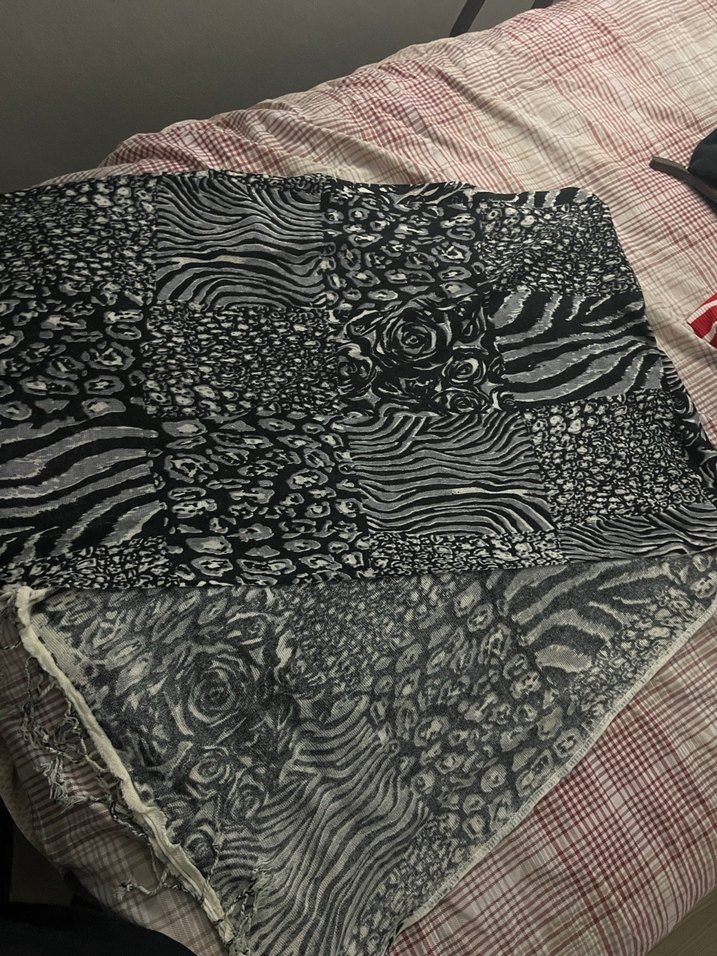 Gri renkte, fırfırlı kenarlara sahip bohem tarzda kadın fularıdır. Hayvan ve çiçek desenlerinin karışımını içerir, retro ve hippie tarzına uygundur.