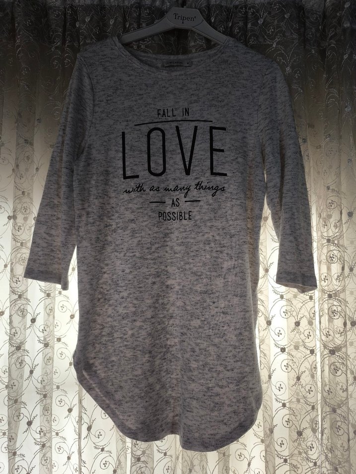 Gri renkli, pamuklu hamile tişörtü; uzun kollu, yuvarlak yaka ve rahat kesim. Baskılı ve dantelli detaylara sahip, günlük sokak stili için uygundur. ❤️