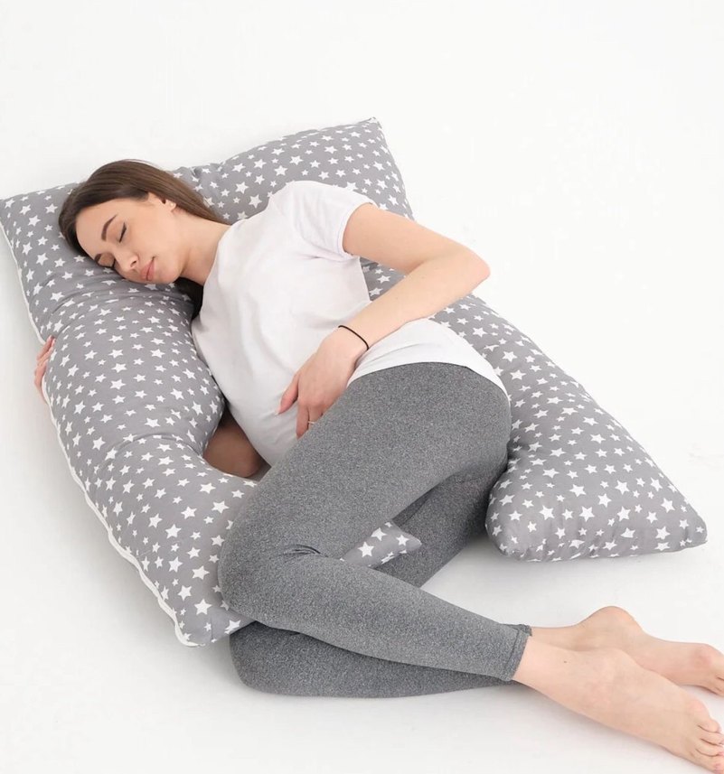 Az kullanıldı. Gri renkli, yıldız desenli hamile ve emzirme yastığı, anneye rahatlık ve destek sağlar. ️