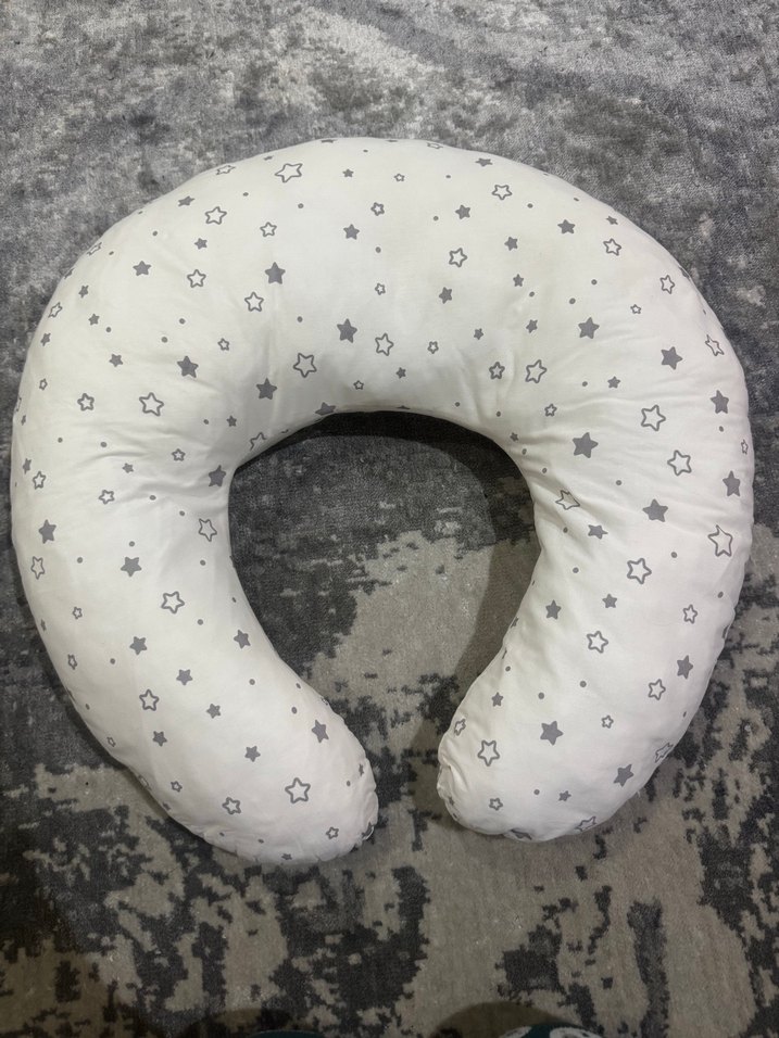 Gri renkli, yıldız desenli hamile ve emzirme yastığı, rahatlık ve destek sağlar. Yataş mini ürünüdür set olarak hediye geldi elimde başka emzirme yastığı olduğu için bunu hiç kullanmadım sadece bebek deterjanı ile bir kez yıkandı