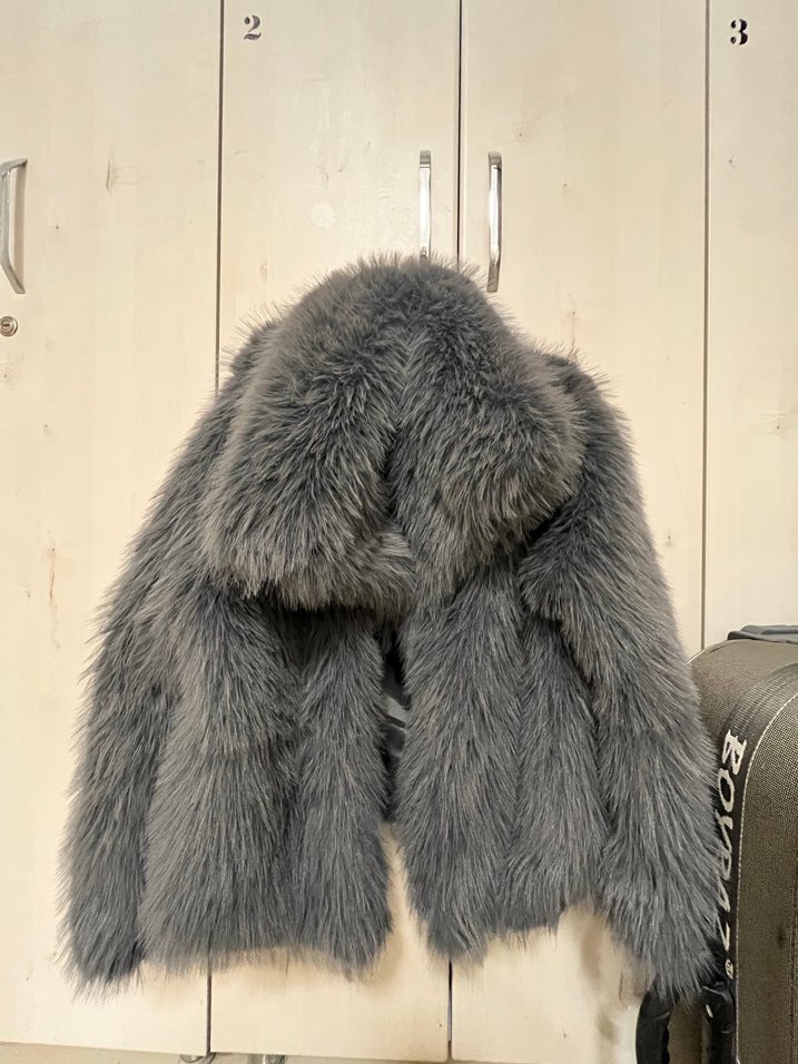 Gri Desenli Kadın Peluş Ceket antrasit kürk Sinem Kıvanç