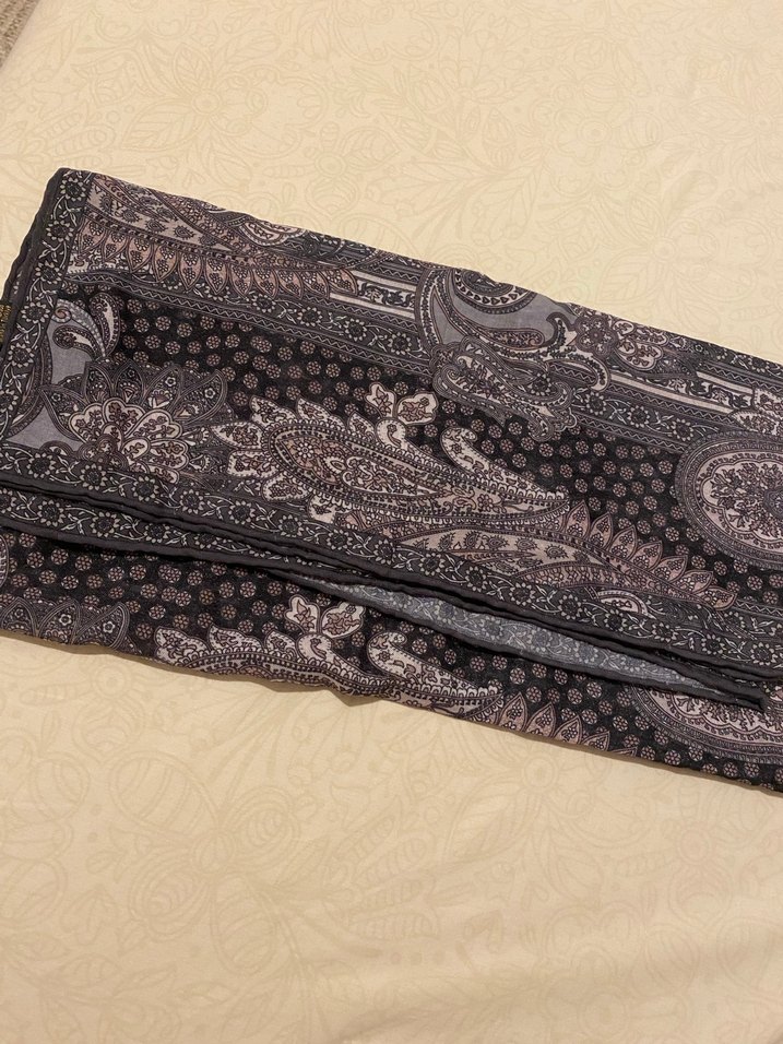 Kadınlar için gri desenli, saten dokulu, fermuarlı bohem tarzı kuşak. hiç kullanılmadı