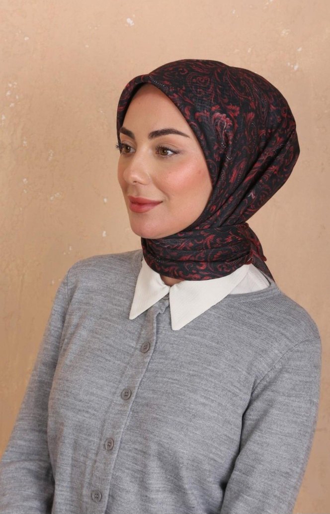 siyah bordo Desenli Kadın soft eşarp