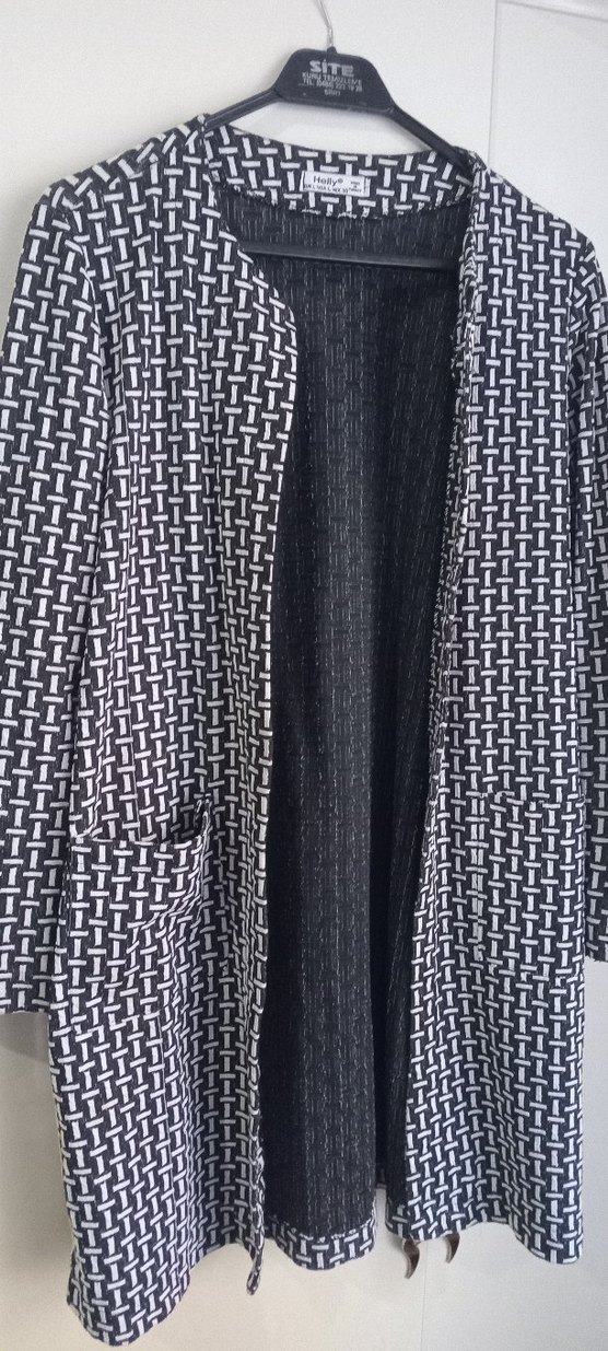 Kadınlar için uzun, gri desenli kaban, kesik yakalı ve drapeli tasarıma sahiptir. Tekstil kumaştan üretilmiş, normal kesim ve uzun kolludur. Günlük kullanıma uygundur.