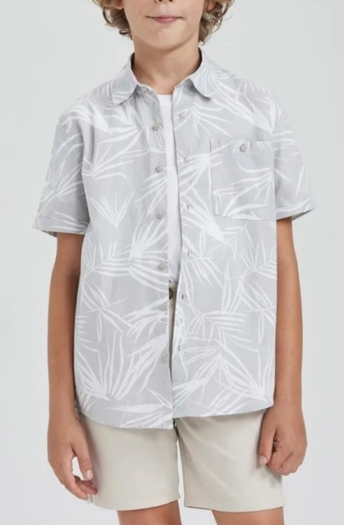Nefes alabilen keten kumaştan, düğmeli, gri desenli, kısa kollu ve yakalı, rahat kesim erkek gömlek. Günlük kullanıma uygundur. #defacto #zara #erkekcocuk