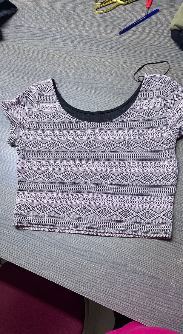 Gri Desenli Kısa Kollu Crop Top