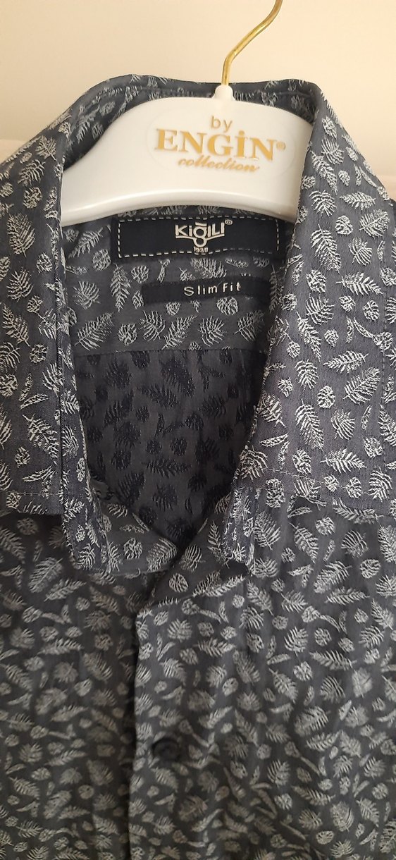 Gri renkli, baskılı desenli, düğmeli kısa kollu erkek gömleği. Notch yaka ve regular fit kesimle günlük sokak stiline uygundur.