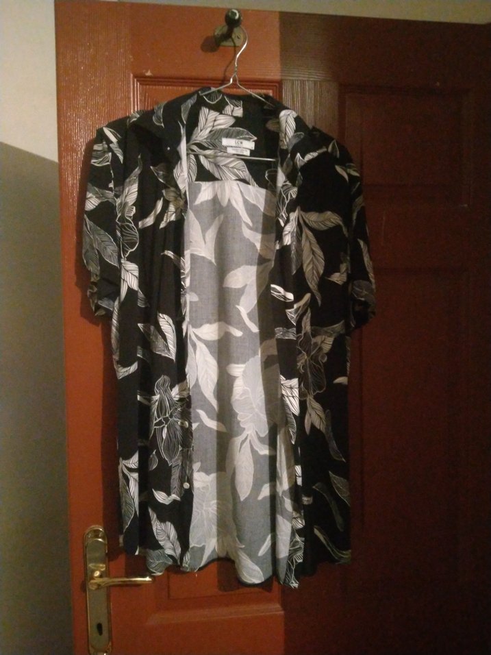 Kısa kollu, notched lapel yakalı, salaş kesim gri desenli erkek gömlek. pamuklu kumaş günlük kullanım için uygundur.
