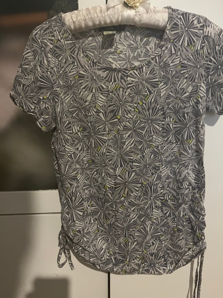 Kısa kollu, bisiklet yaka ve gri tie-dye desenli, baskılı, normal boyda, dar kesim.Günlük rahat kullanıma uygun.